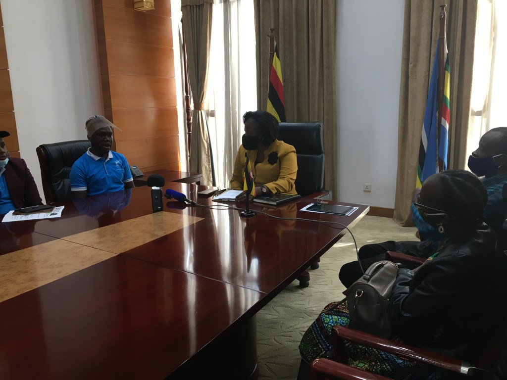 Newly appointed Executive Director of Kampala Capital City Authority – KCCA Mrs Dorothy Kisaka on behalf of National Chairman Tusk Force at Office of the Prime Minister of Uganda receive Heal The Planet Global Organisation – HTP officials led by President Kivumbi Earnest Benjamin who have declared Food Relief Aid worthy 150,000,000 UGX.