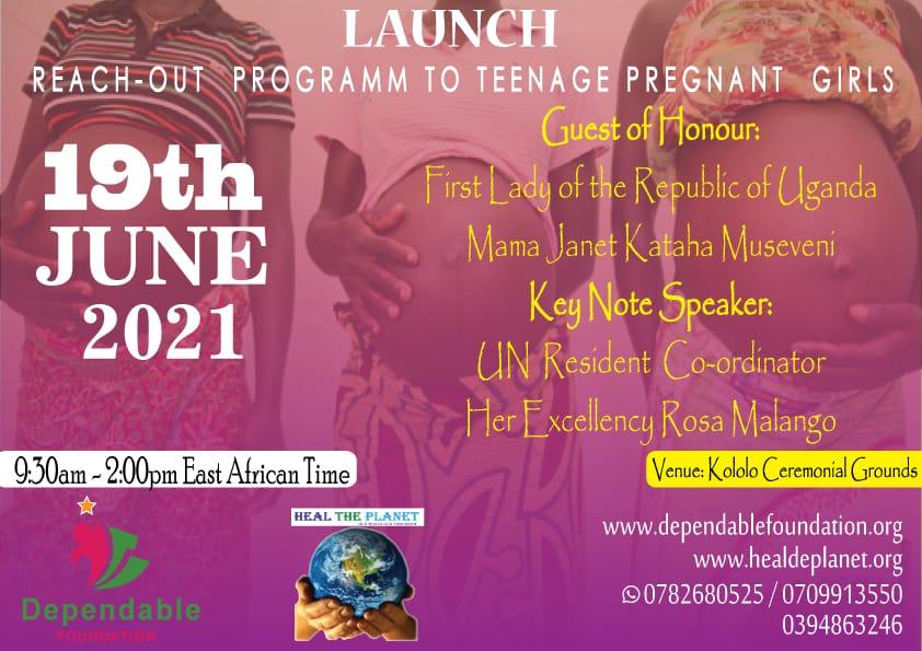 On Sat 19th June 2021 Uganda’s First Lady Mama Janet Kataha Museveni will address the nation at Kololo Airstrip on Teenege Pregnancy at a Launch of a campaign on the subject matter organised by Dependable Foundation in conjunction with Heal The Planet Global Organisation – HTP powered by big hearted cooperate companies.