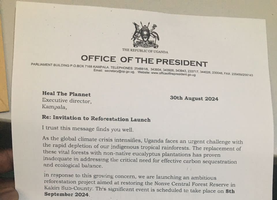 We’re privileged to Join H. E Prof Gilbert Bukenya at the Launch of Reforestation of #NONVEFOREST. This Sunday is a great milestone to tell the world that Uganda adheres to @UN Protocols to save our planet ahead of #COP29_AZ .
